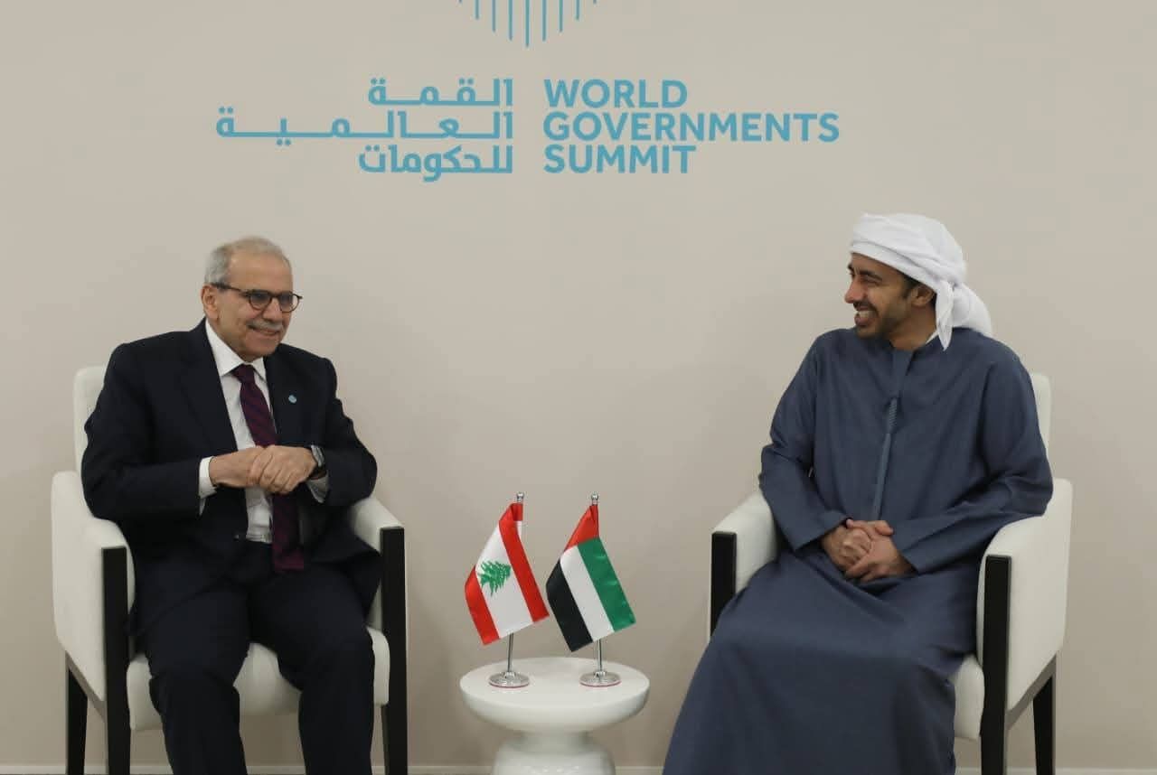 التقى رئيس مجلس الوزراء الدكتور نواف سلام وزير الخارجية الإماراتي الشيخ عبد الله بن زايد آل نهيان، على هامش مشاركته في القمة العالمية للحكومات.