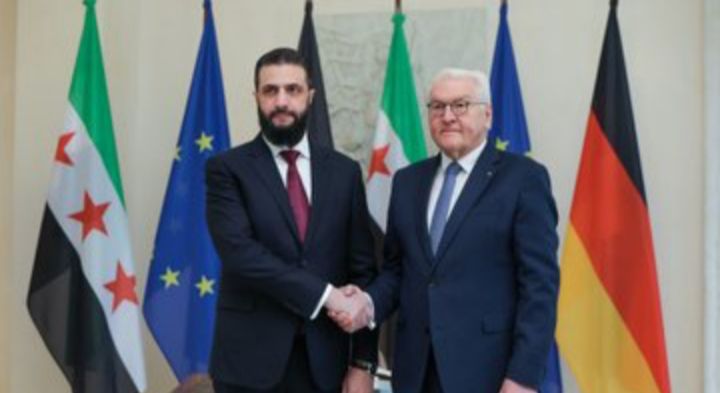 كما التقى الشرع الرئيس الألماني فرانك فالتر شتاينماير في قصر الرئاسة الاتحادية، ومن المتوقع أن يجتمع مع المستشار فريدريش ميرتس لبحث حزمة من الملفات تشمل مستقبل الاستقرار في سوريا وملف اللاجئين، الذي يشكل أحد أبرز نقاط التباين بين الطرفين.