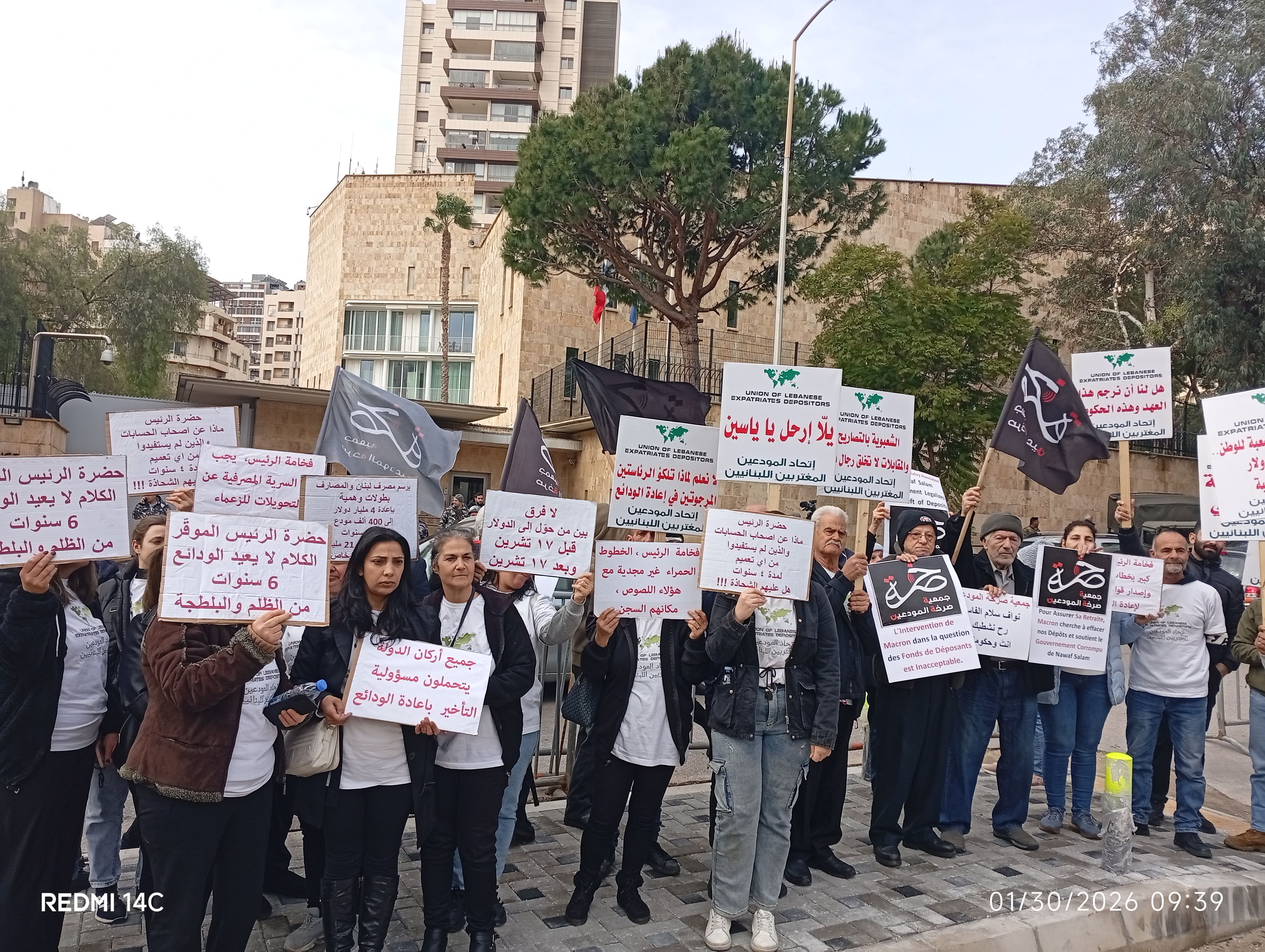 نظّم اليوم اتحاد المودعين المغتربين، وجمعية «صرخة المودعين»، وقفة احتجاجية أمام السفارة الفرنسية في بيروت، اعتراضًا على الموقف الفرنسي الداعم لقانون الفجوة المالية الذي أقرّته الحكومة اللبنانية. ورفع المحتجّون شعارات تندّد بما وصفوه بتكريس الخسائر على حساب المودعين، مطالبين بإعادة النظر بأي تشريع يمسّ بحقوقهم ويحمّلهم أعباء الانهيار المالي.